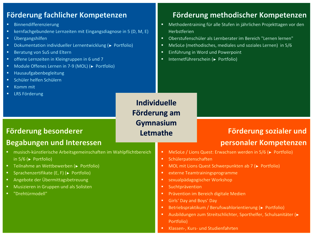 Das vorliegende Konzept zur individuellen Förderung der Schülerinnen und Schüler am Gymnasium Letmathe ist das Ergebnis einer Arbeitsgruppe unter Beteiligung von Schülern, Elternund Lehrern. Am 8. Juli 2013 wurde das Konzept von der Schulkonferenz beschlossen.