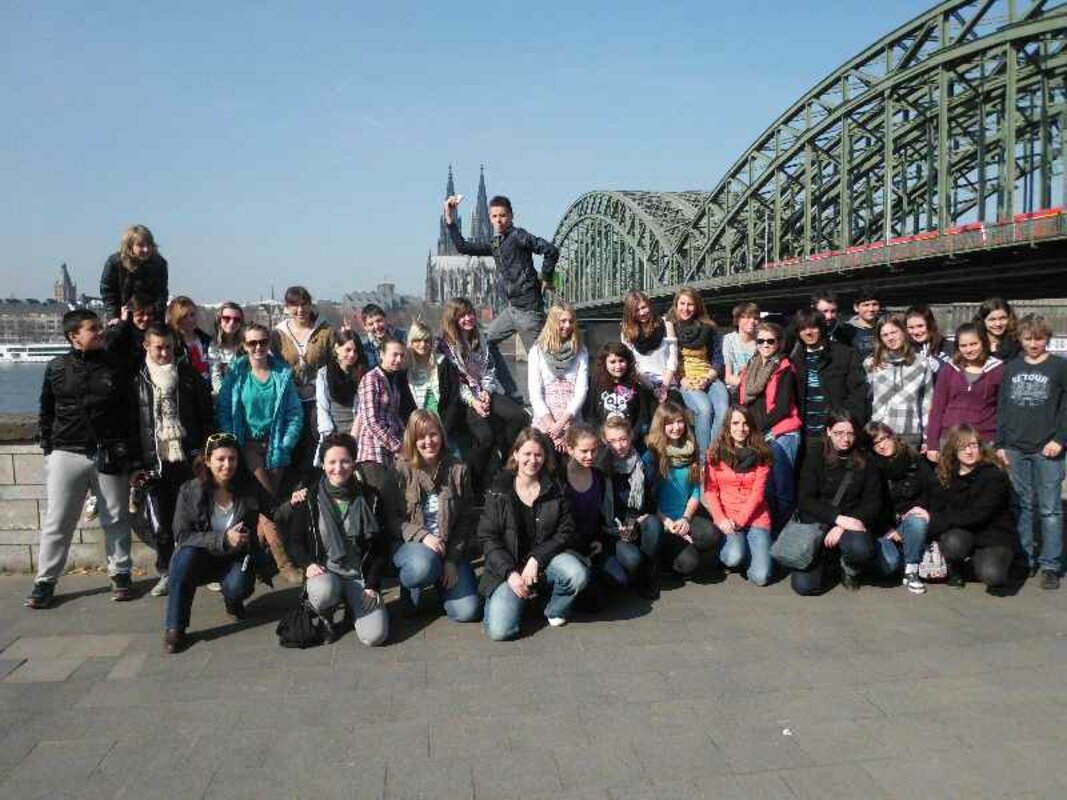 Am Dienstag sind wir mit den französischen Austauschschülern und ihren deutschen Korrespondenten nach Köln gefahren. Bei herrlichstem Frühlingswetter haben wir zunächst eine geführte deutsch-französische Stadtführung gemacht und sind anschließend ins Schokoladenmuseum gegangen. Anschließend sind wir am Rhein entlang Richtung Dom gelaufen. Nach einer kurzen Besichtigung des Doms sind einige Schüler noch auf den Dom hochgelaufen. Die anschließende Freizeit in der Kölner Innenstadt haben alle in Kleingruppen sichtlich genossen! Am späten Nachmittag ging es nach einem rundum gelungenen Tag wieder Richtung Letmathe.